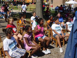 .Pictured: Children enjoy a puppet show at a recent block party at Gentilly Baptist Church sponsored by Souther Baptist volunteers.